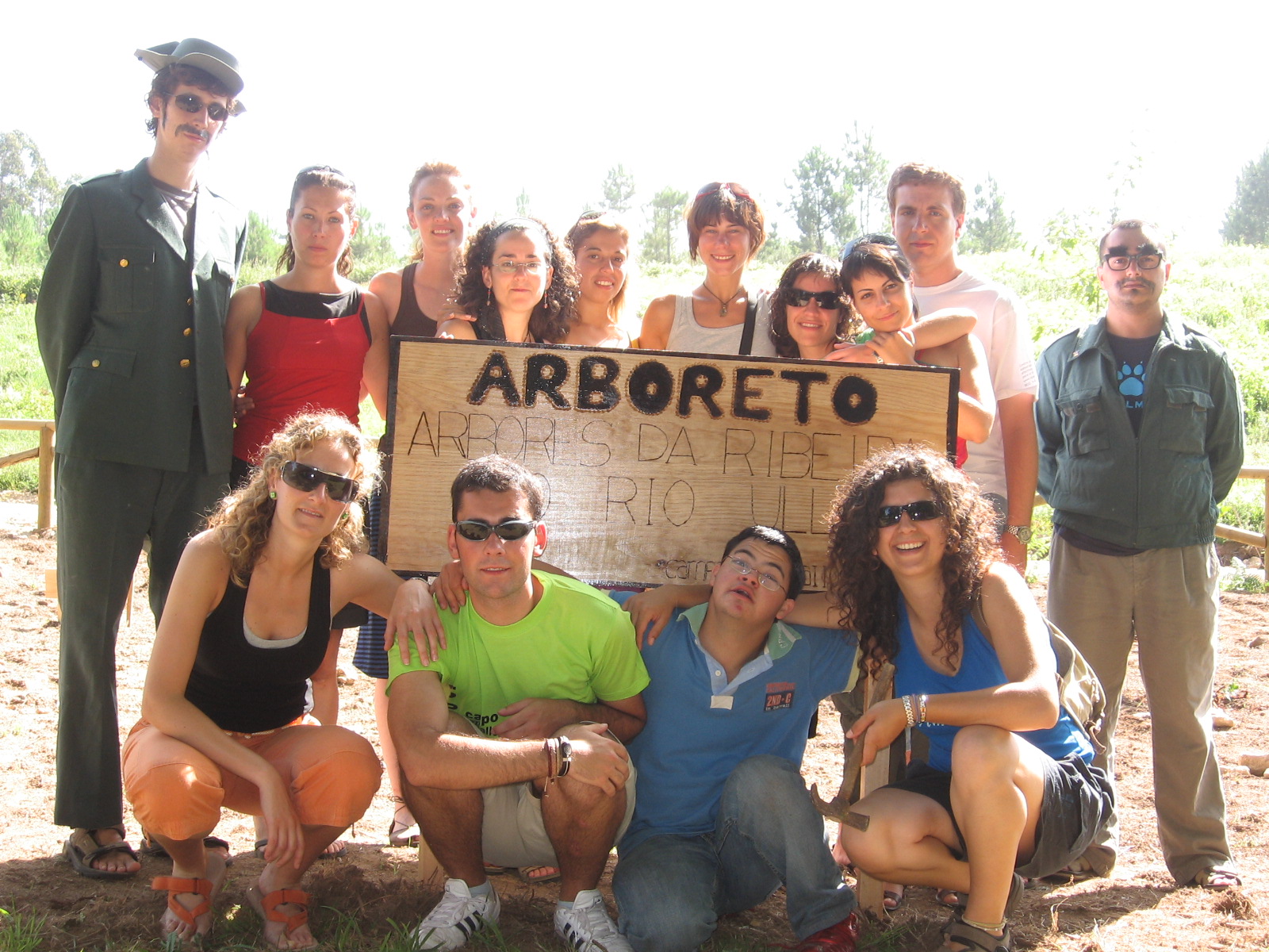 Poteo intercultural. No todo iba a ser trabajar. En la foto posamos un pequeño grupo desde la verbena de Caspe. Hay gente de Huelva, Castellón, Murcia, Francia, Repulica Checa, Polonia, Mexico y Euskadi.