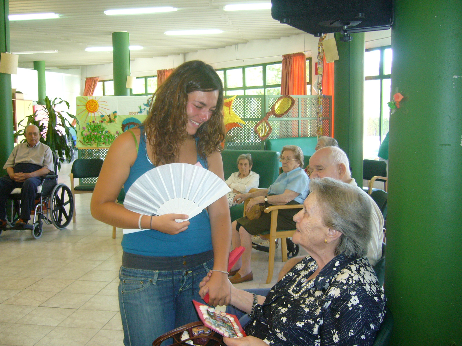 En esta foto salgo yo haciendo manualidades con un grupo de residentes.