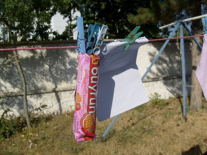 Uno de los juegos que amenizaban nuestro workcamp era el del "Amigo secreto". Nos hacíamos pequeños regalos los unos a los otros anónimamente, pude hacer una foto de uno de ellos. Eran pequeñas notas de color durante nuestra apasionante estancia.