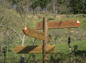 Bidea lauza zaharren gainean egiten da –bikain kontserbatzen dira–. Eta, bidertzean, alboetako arroketan grabaturiko harrizko gurutzeak ageri dira