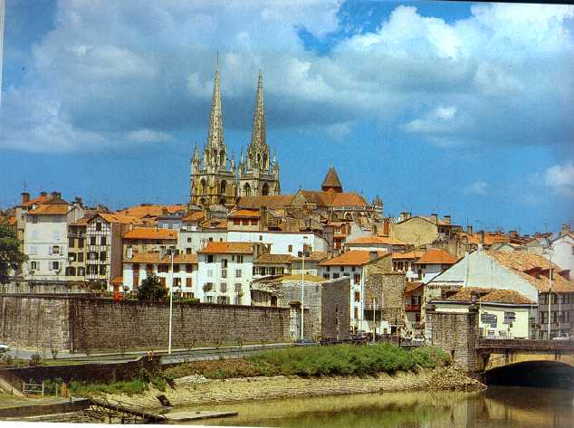 El símbolo de la prosperidad de una ciudad medieval es su catedral. La Catedral de Santa María de Bayona es soberbia. Comenzó a construirse en el siglo XIII, por el coro y el diambulatorio de cinco capillas, sobre la antigua iglesia románica, demasiado pequeña. Se terminó en el siglo XVI, aunque sus agujas de 88 metros de altura no fueron construidas hasta el siglo XIX. Tiene tres naves y seis tramos. Su estilo es una mezcla de gótico rayonnant y flamígero. En la nave central, del siglo XIV, las claves de bóveda están blasonadas con los lirios de Francia y los leopardos de Inglaterra. En el brazo sur del transepto, la más bonita de las claves de bóveda está decorada con la famosa nave bayonesa con sus mástiles, sus castillos y cinco marineros, expresión del poder naval de la ciudad en aquella época. En la torre sur, de estilo gótico flamígero, construida a finales del XV y principios del XVI, los lirios han desbancado a los leopardos. Flanqueando la catedral se encuentra un vasto claustro de estilo gótico rayonnant del XV que era lugar de reunión y asamblea.