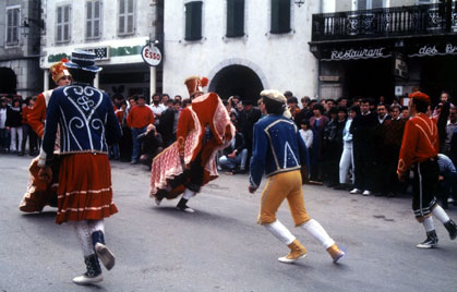 Segizioa bi talde ia antagonikoetan banatzen da: batetik Gorriak ditugu, dotore jantzita daude, ordenatuak dira eta dantzaren pauso eta mugimenduetan txukunak; eta, bestetik Beltzak ditugu, hauek desordenatuak eta zarpailak dira, ibiltariei zirikatzen diete, oihu egiten dute eta, beste garai batzuetan, Biarnoko hizkuntzan edo okzitanieraz mintzatzen ziren.