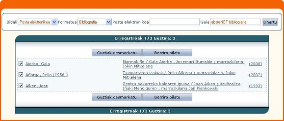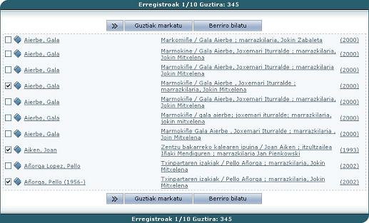 Bilatutako erregistro guztiak hautatu nahi badituzu, klikatu Guztiak markatu.