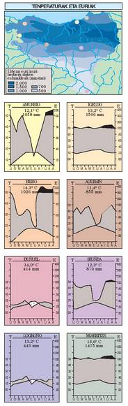 horien ondorioz, berezitasun interesgarriak gertatzen dira, eta Atlantikoko klima, Mediterraneoko klima ala kontinente barrukoa gertatzen dira nagusi, toki
