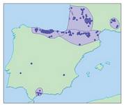 • Hegoaldean, Ebroren ondoan: Araban (Turiso-Ebro eta Errioxa) eta Nafarroan (Viana eta Artaxona-Zirauki).