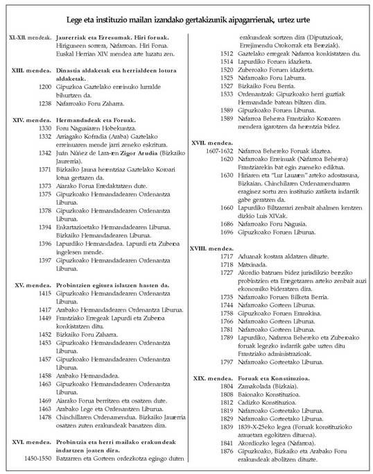 Luzea izan zen (XIV-XVII. mende bitartean) foruen araberako erakunde politikoen eratze prozesua, zeinek bere erritmoari eta erari jarraitu baitzion lan horretan; Bizkaikoen sorrera, esate baterako, zegoen gogorkeriak eta giro horrekeragin zuen zatiketak atzeratu zuten. Nafarroako erresuma gainerako lurraldeak baino lehenago iritsi zen antolaketa berri konplexuago eta zehatzago hori izatera.
