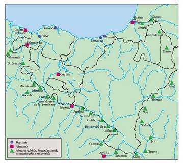 ere Euskal Herrira sartzen ziren, handik Gaztelara eta, Cadizetik barrena,