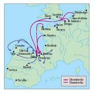 iristen ziren, Lisboatik barrena Portugalenetara, eta Bordeletik Frantziarenetara.