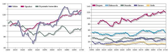 handitu zen, eta 1655. urtetik aurrera goranzko joerari eutsi zion.Nolanahi ere, hiri eta nekazaritza giroko munduen artean desberdintasun
