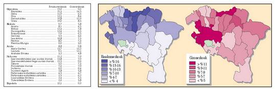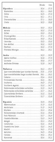 adierazten zuena. Gainera, kopuruak oso homogeneoak ziren eskualde