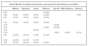 har zitekeen. 1635. urtetik aurrera Euskal Herri hezeko biztanle kopurua nabarmen