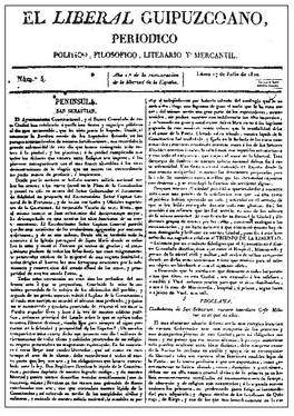 1814ean absolutismoaren berrezarpenak ipinitako isiltasun bortxatuaren ondoren, 1820-1823an, errejimen liberala sortu ondoren, agertu zen Donostian Euskal Herriko aldizkaririk mamitsuena, XIX. mendean: El Liberal Guipuzcoano (1820- 1823). Azken hau Donostian literaturazko tertulia liberal batean jaioa da; tertulia horretan erabakitzen ziren gehienik hiriaren nondik norakoak, hango izenik handienak Colladotarrak, Elías de Legarda, Brunet… baitziren. Argitaratzen zuten aldizkaria liberala eta konstituzioaren aldekoa da, inolako zalantzarik gabe: aldi berean moderatua eta katolikoa ere bazen, eta orobat Ilustrazioaren oinarri nagusiez jabeturik azaltzen da.