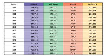 Ziklo demografiko modernoak, Euskal Herrian XVIII. mendearen azkenetan hasi zenak, bi mendez dirau gaurdaino, eta hiru ezaugarri ditu lehenagoko beste edozein biztanle hazkunderekiko bereizgarri: garrantzia edo neurria, jarraitasuna eta iraupena.Izan ere, aurrerapauso handia, XVIII. mende azkenetik izandako hazkunde demografiko etengabeak erakusten du. 1787 eta 1991 artean milako 0,78ko hazkunde izan da urtero batez beste, gizaki kopurua bost bider areagotu delarik lurralde honetako iraultza demografikoa burutzean. Geure historiaren azken bi mendeetan Bizkaian hamar bider egin du gora biztanle kopuruak, Gipuzkoan bost bider eta Araban hasierako biztanle kopuruak ia lau bider egin du gora.
