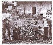Baserritar familia, 1915 inguruko argazki koloreztatua («De la fotografía a la cinematografía»).<br><br>