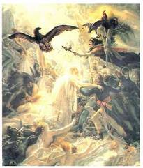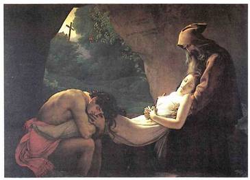 Girodeten Atala bilobian (1808), erromantizismoaren ezaugarriei jarraituz gizonen maitasuna eta jainkozkoa elkarri loturik agertzen dituen koadroa. Louvre museoa, Paris.<br><br>