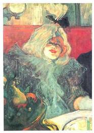 Toulouse-Lautrec-en bi obra. Ezkerrean, Moulin de la Galette-ko txoko bat koadroa (1892). Nazional Ga11ery, Washington. Eskuarean, Moulin Rougen, la Goulue kartela (1891).Irudi hauetan ikus daitekeenez, kabaretak eta tabernak izan ziren Toulouse-Lautrec-en obretako gai nagusiak.<br><br>