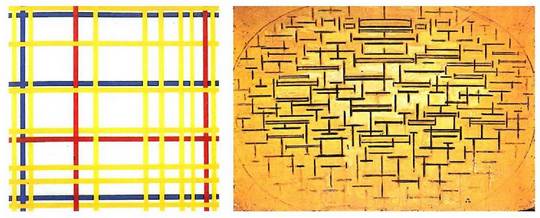 Piet Mondrian Amersfoort-en (Utretcht) jaio zen 1872an. 1892tik 1895era Amsterdameko Akademian aritu zen ; garai hartan paisajeak marraztu zituen batez ere (Amsterdam ingurtiko paisajea, 1902, Seuphor bilduma, Paris). Horrez gainera, bizibidea ateratzeko, museoetarako kopiak egiten zituen, eta marrazki zientifikoak Liedengo Unibertsitaterako. Domburg-era (Zeelanda probintzia) joan eta J. Toorop ezagutu zuenean, erabateko aldaketa gertatu zen Mondrianen estiloan : lehenengo lanetako estilo naturalista (1895-1907) alde batera utzi, eta sinbolismoaren bilaketari ekin zion. Sinbolismoak eraginda, irudien egiturak banatu zituen eta kolore biziak erabiltzen hasi zen ; koloreak hainbat eremutan banatzen zituen, teknika fauvista eta teknika puntillistaren bidez zenbaitetan. Garai horretan, sail bat osatu zuen zuhaitza gai hartuta : Zuhaitz gorria (1909-1910) ; Zttbaitz berdea (1911) ; Sagarrondoa loretan (1912). 1911-1914 urteetan Parisen bizi izan zen ; urte horietan forma organikoak baztertu eta hirietako irudiak (Facade, 1913, Amsterdam, Stedelijk museoa) eta konposizio gero eta zorrotzagoak (I. Koadroa, 1913, Otterlo, Rijksmus. ; Konposizio obala, 1914, Haga, Gemeentemus .) egin zituen. 1914an Herbehereetara itzuli zen, eta hantxe egon zen 1919. urtea arte. Garai horretako lanetan lerroen eta koloreen oinarriak bilatzen saiatu zen batez ere, baina, hala ere, naturari buruzko izenburuak jartzen zizkien (Kaia eta ozeanoa, 1915, Gemeentemus., Haga). Garai horretan, bestalde, espazioaren eta sakontasunaren arazoari konponbidea bilatu nahaian aritu zen. De Stijl aldizkaria (1917) eta neoplastizismoa sortu zirenean, zehatz-mehatz azaldu zituen Mondrianik estilo berriaren oinarriak (Neoplastrzrsr)zoa, 1917). Alemaniako idealismoa berreskuratu nahiz, gizakiaren eta unibertsoaren arteko harreman orekatuak bilatu zituen. Hortaz, artelanak ez zuen ezer adierazi behar, bi osagaien arteko lotura soil-soildc. Helburu hori iristeko lerro zuzenak eta lauki zuzenak besterik ez zituen erabiltzen formei dagokienez, eta koloreei dagokienez, berriz, oinarrizkoak (horia-gorria-urdina) eta ez-koloreak (zuria, beltza eta grisa) bakarrik . 1919. urtetik aurrera Parisen bizi izan zen eta han Cercle eta Carre ("Zirkulua eta Karratua") taldeko kide egin zen eta Abshzzctiorz-Creatlorz higikundeko ("Abstrakzio- Sorkuntza") jarraitzaile. 1938an Londresa joan zen eta 1940an New Yorkera ; hiri horretan bizi izan zen hil zen arte. New Yorken bizi izan zen urteetan kolore askoko lanak egin zituen : BioadwayBoogi-Woogre, 1942-1943, New York, Arte Modernoko museoa ; New Iork City saila, 1942, New York, H. Holtzetan bilduma.