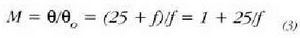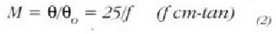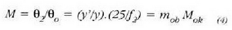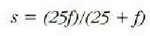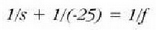 Ordezkaketa eginez, q = (25 + f)y/(25f), eta handitze angeluarra: