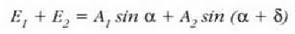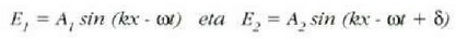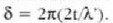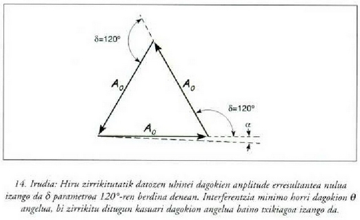 Hala, irudian adierazitako bi izpiek, isla gertatu ondoren, 180°-ko fase aldaketa izango dute. Bi izpi horien arteko fase diferentzia, beraz, ibilbide diferentziaren araberakoa da, eta era honetan adieraz daiteke: