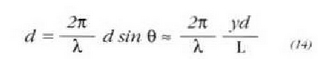 Pantailaren erditik P punturainoko y distantzia (pantailan harrena neurturikoa) angeluarekin adierazpenaren bidez olago lotuta; I, parametroa zirrikituetatik pantailara dagoen distantzia ola. Bestalde, angeluaren balio txikietarako hurbilketa beteko ola. Beraz, izango ola, eta (7) adierazpena honela geratuko da: