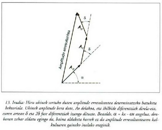 Hiru iturrik, lauk edo lau baino gehiagok sortuko cluten interferentzia diagrama eta zirrikitu bakar batek sortzen duen difrakzioakalkulatzeko, maiztasun bera duten baina fasez aldatuta dauden zenbait uhin armoniko elkartu behar dira. Uhin funtzio armonikoen interpretazio geometriko bat aintzat hartuz gero eta egitura geometriko sinplea erabiliz, maiztasun bereko uhin armonikoen batuketarako metodo orokor bat lor daiteke. Metodo horren bitartez, (10) formula trigonometrikoaren beharrik gabe batu ahal izango dira geometrikoki bi uhin armoniko. Metodo hori hera erabil daiteke uhinen anplitudeak desberdinak direnean edo bi uhin baino gehiago daudenean. Metodoaren oinarria hau da: bi bektoreren erresultantearen y (edo x) osagaia, bektoreen y (edo x) osagaien baturaren berdina da.
