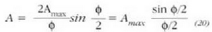 Lehenengo uhinaren eta azkenekoaren arteko fase diferentziak 360 ° + 180° balio du, gutxi gorabehera. Hau da, bektoreak bira bat eta erdi osatuko du. Anplitude erresultantea irudian ageri clen zirkunferentziaren A diametroa izango da; zirkunferentziaren C perimetroa luzera osoaren bi herenak hartuko dituenez, honako hau bete beharko da: