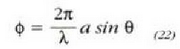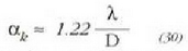 (28) aclierazpena (16) ekuazioaren antzekoa da, 1.22 faktorea izan ezik, kasu honetako aclierazpen geometria zilindrikoa baita. Bestela, zirrikatu bakarraren kasuan egindako azterketa matematikoa egin behar da. Aplikazio askotan, angelua txikia izaten da eta heste era honetara idatz daiteke azken ekuazioa: