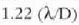 Lehenengo difrakzio gutxienekoari dagokion angelua uhin luzerarekin eta irekiduraren D diametroarekin era honetan lotzen da: