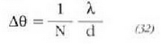 Angelu zabalera" hori 1/N faktorearen eta ordena desberdineko (31. ekuazioko ni desberdinak) tarte angeluarraren arteko biderkaketa ola gutxi gorabehera, angelu txikietarako angelu tarte hori 1/dren berdina baita.