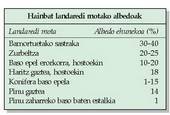 Basoak tenperaturari buruz dituen berezitasunak, eta zuhaitz mota jakin batetik bestera dauden desberdintasunak albedoetan islatzen dira. Horrela, pinudi zahar bateko estalkiaren albedoa ehuneko batekoa da, eta basamortuetako sastraketakoa, aldiz, ehuneko berrogeikoa. Bi maila horien artean daude klima epeletako hosto erorkorreko baso hostodunaren albedoa (%10- 20), eta harizti gazte hostodunarena (%18).