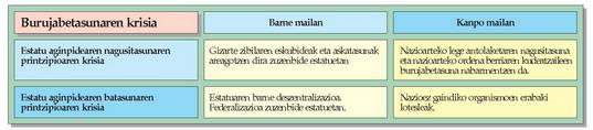Hala ere, 70eko hamarraldiaren hasieran, oparotasun zikloa bere azkenetara iritsi zen; ekonomia krisia (diruarena, energiarena) ereduaren krisi politiko bihurtu zen. Ongizatearen Estatuak kritika zaparrada handia jaso zuen hala eskuin neoliberaletik nola ezker neomarxistatik. Estatunazioek zuten gehiegizko zama arindu beharra izan zuten, eskumenak beheragoko mailetara igaroaraziz; horrek, beren izaera aldatu ez ezik, beste zentzu bat eman zien bai tokiko boterearen egiturei eta bai boterearen lurralde banaketak sorrarazitako estatuz azpiko banakoei (eskualdeak, autonomia erkidegoak, estatu federatuak).