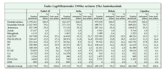 1998ko urriaren 25ean Eusko Legebiltzarrerako