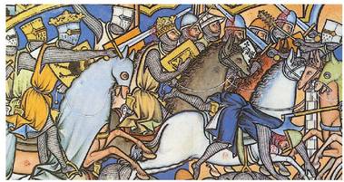 Gurutzatuak Konstantinoplara iristen, XV. mendeko irudi batean.<br><br>