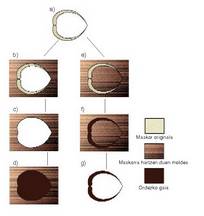 1. Irudia: Dinosauru-icnita baten eraketa. Animaliaren oinatz bat lokatzetan edo hondarrean markaturik geratzen da (1). Ibai baten ur goraldiak edo itsasoak oinatza estali eta jalkina jalkitzen du haren gainean; oinatzaren formak iraun egiten du (2, 3). Denborarekin, trinkotu eta harri bihurtzen da (4). Hasierako lokatz edo hondarrak, gogorturik, arrastoa gordetzen du (5) eta oinatza estali zuen jalkinak molde bat eratzen du (6).<br><br>