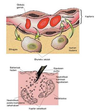 askokoa (odol gorria). Oxigenoa galtzen