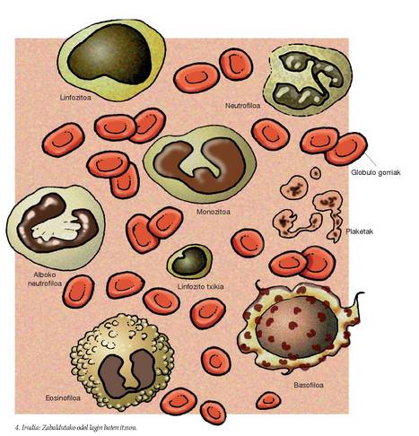 zelulez —zelula gorri eta zuriez— eta hainbat