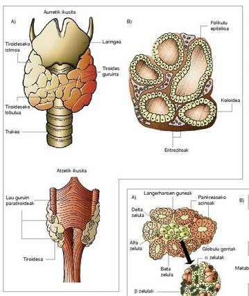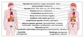 dira gune horiek: epifisia, hipotalamoa, hipofisia, tiroidesa, paratiroidesa, pankreasa, giltzurrin