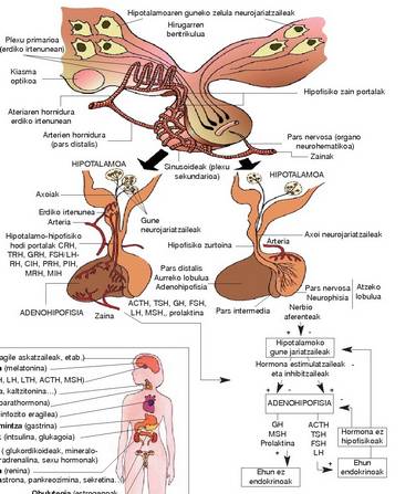 bidez (hipotalamo-hipofisi sistemaz). Zortzi