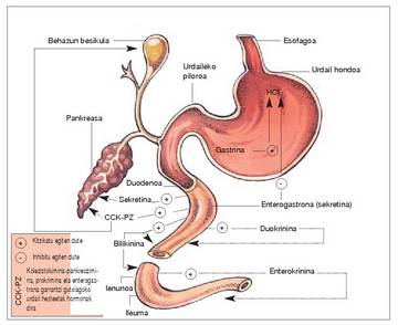- Enterokrinina. Heste urinaren isuria estimulatzen du.