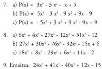 balioek polinomioari zero balioa ematen baitiote.Ebatzitako ariketak.9. Ebatzi ekuazio hauek.