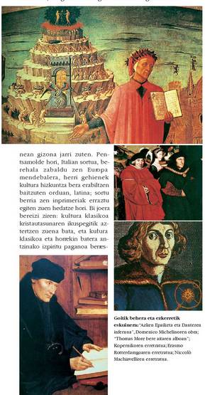 XV. mendean Europako politikaren egituran gertatu ziren aldaketek, estilo intelektual berri baten sorrerarekin batera, esanarazi zien zenbaiti, orduan bertan, Erdi Aroa amaitu eta aro berri bat hasten zela. Kristau munduaren espiritu batasunaren sinbolo zen aita santuak, zismarekin eta kontzilioen higikundearekin, itzala galdu zuen, eta Italian nagusitzen ari ziren ideia laikoez kutsatu zen. XVI. mendean Erreforma protestanteak elizaren ustelkeriaren kontra egin zuen, eta horrek katolikoen erreakzioa ekarri zuen: Kontraerreforma. Aldi berean, Europako ikusmoldea eta paisajea bat-batean zabaldu ziren Amerikaren aurkikuntzarekin eta Ekialdeko espedizioekin.