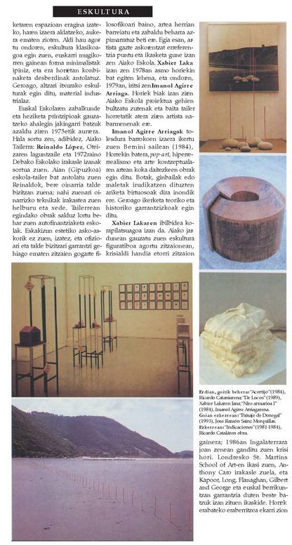 Azkenik, zenbait eskultorek, Veneziako XLV. Bi Urtekoan Espainiaren ordezkari (1993) izan den Cristina Iglesiasek (Donostia, 1956) adibidez, urte gutxiren buruan nazioartean ospe eta entzute handia erdietsi dute, euskal artearen bizikizun zaharrekin lotu gabe. Gisa honetako artista kosmopolitak dira, inolako zalantzarik gabe, frogarik garbiena gaurko euskal artea nazioarteko joeretan zenbateraino txertatu den egiaztatzeko.
