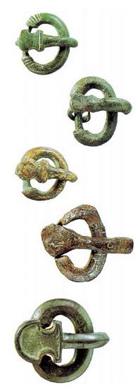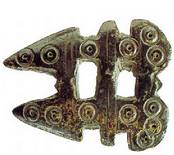 • Buzagako nekropolisa Elortz udalerrian dago, Iruñetik 13 km-ra. 1986an herri hartako muino batean, metalezko gauzaki batzuk azaleratu ziren eta harrezkero interes handieneko material kopuru polita bildu da. Izan ere, testuingururik gabe agertu arren, Buzagako materialek erabateko garrantzia dute eskuartean daukagun gaiari doakionez. Aldaietan bezala, alderdi militarra nabarmena da oso (hogeita hamar arma, ezpata, sastakai eta lantza muturren artean). Baina, batez ere gerriko-xaflak dira aipatu beharrekoak, zeren eta “akitaniar molde” direlakoen bereizgarriak modu paradigmatikoan azaltzen baitituzte, halako eran non Buzaga oinarri-oinarrizko testigantza bihurtzen den garai horretarako. Kronologiari dagokionez, Aldaietakoaren antzera, Buzaga VI. mende oso aurreratuan koka daiteke, VII. mende osora gutxienez luzatzen delarik.