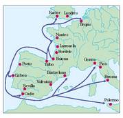 eta Britainia Handiko mendebaleko kostaldeetara eta Mediterraneo aldean