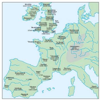Oso luze eta nekez zerrendatuko genituzke mende hauetan zehar Europan izan ziren altxamendu guztiak. Zenbait, gainera, elezahar eta epopeiaren mailara iritsi da. Hona horietako batzuk: Alemaniako nekazarien guda 1524-25ean; 1648- 53. urte bitartean Fronda izenez ezaguna dena; Razingo Behe Volgako altxamendua (1670-71), Bulavin-goa (1707-08) eta Pugachev-koa (1773-74); Ingalaterrako Kett-eko errebolta (1549); Alpujarretako altxamendua (1568koa); 1693-95eko Valentziako germaniak; 1638-51ko Eskoziako errebelamendua eta Irlandakoa 1641- 52 artean; eta beste hamaika.