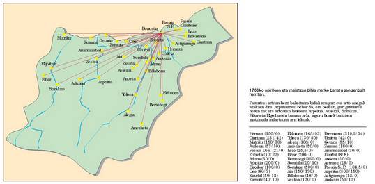 Kasu honetan, agintarien erantzuna gogorra eta berehalakoa izan zen: indar armatu bat antolatu eta herrietan sartu ziren beren bidean inolako erresistentziarik aurkitu gabe, izan zitekeen gatazka ere izan aurretik zapalduz. Alabaina, eta bitxia dirudien arren, 1755eko Batzar Nagusiek, beste dekretu bat eman zuten abereen sartu-irteera librea onartuz eta, aurrekoarekin kontraesanean datorrela dirudien arren, berau izan zen espekulazioa murriztu eta prezioei eusteko bidea.• 1766ko matxinada.