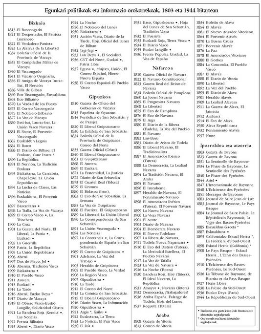 Egunkari politikoak eta informazio orokorrekoak, 1803 eta 1944 bitartean
