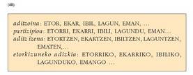 lagundu, ?), aditz izena (etortze-, ekartze-, laguntze-, ?) eta