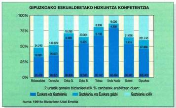 Biztanleria elebidunaren proportzioa txikia da Donostialdean, Bidasoa Beherean bezala: bi urtez gorako biztanleria hartuta, %30 mintzatzen da euskaraz; horiekin batera, %20 euskaraz ulertu eta zertxobait hitz egiteko gai da.
