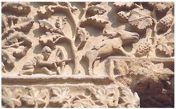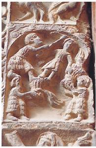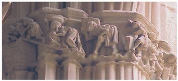 Adan hazia ereiten. Erdi Aroko irudiak, Erriberriko Santa Maria la Realeko kapitel batean (Nafarroa).<br><br>